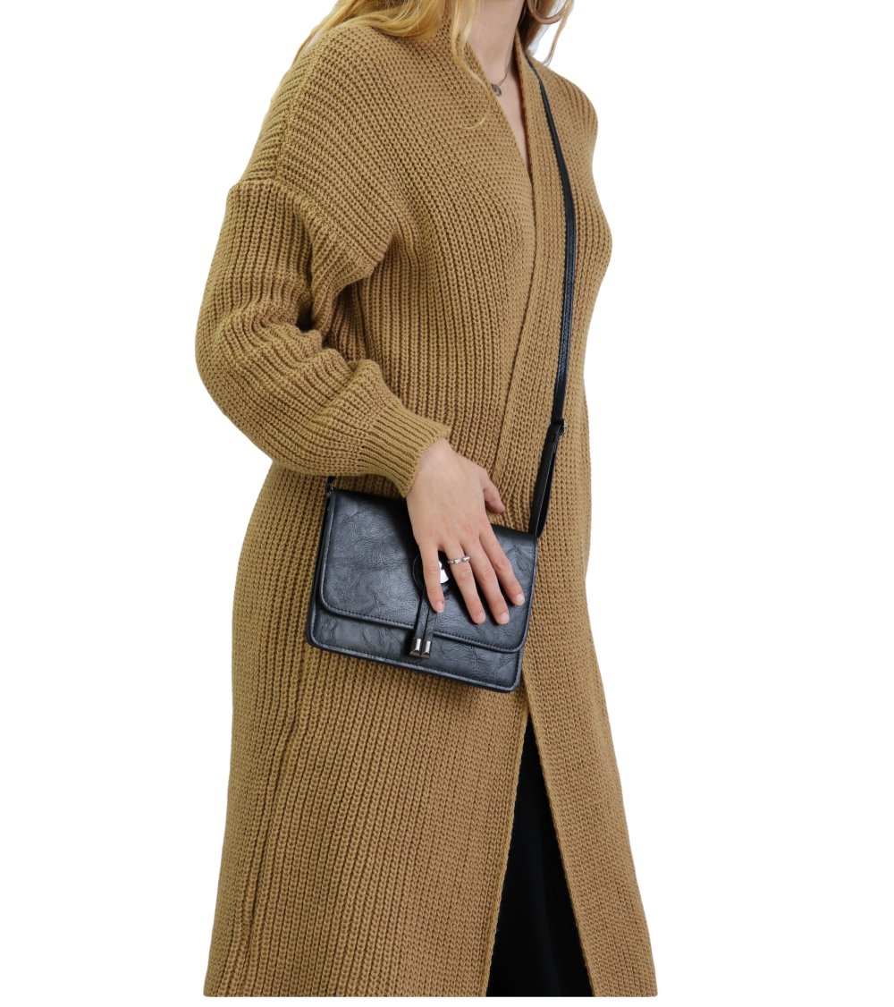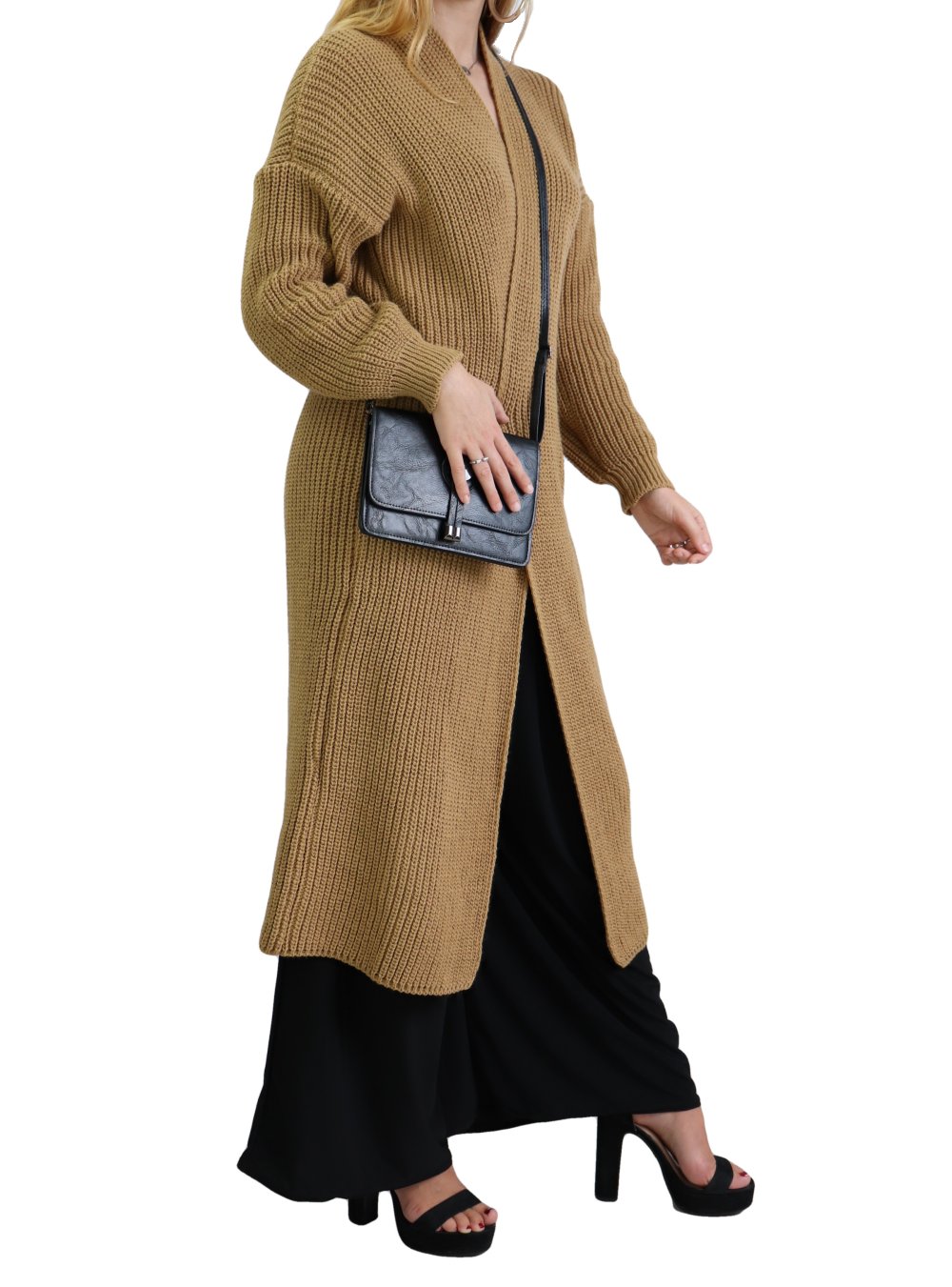 Long gilet en maille sans fermeture, manches longues. Idéal pour réchauffer votre look.