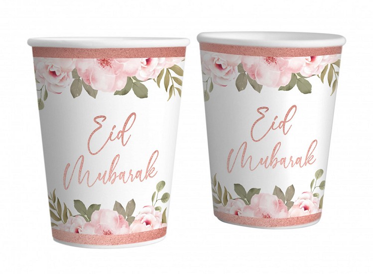 Gobelets fleuris Eid Mubarak (Aid Moubarak pour le jour de la fete) - Couleur rose dore (6 pieces)