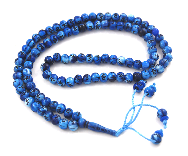 Chapelet "Sebha" 99 grains couleur marbre gris avec les noms d'Allah et du Prophète Muhammad (SAW) sur chaque grain. Un séparateur est placé tous les 33 grains.