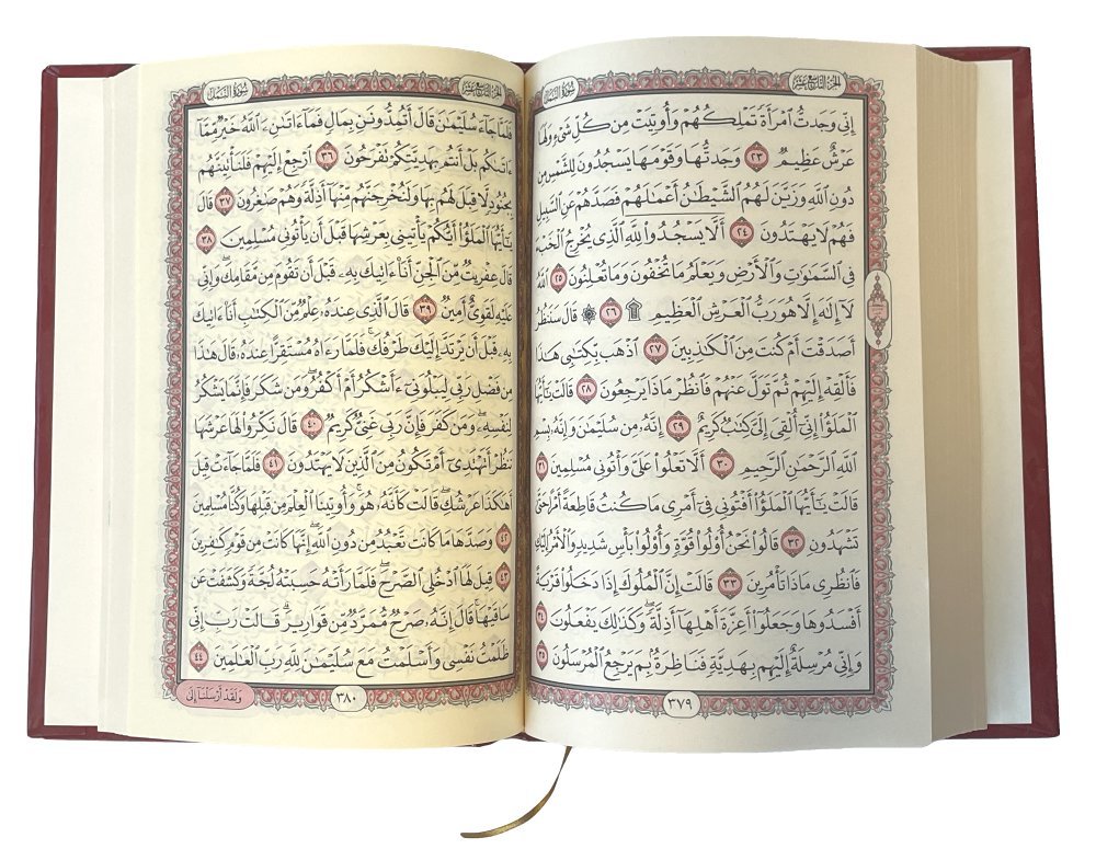 Pack cadeau : Coran arabe (Lecture Hafs) Couverture rouge dorée rigide + Grand porte Coran en bois + Chapelet "Sebha" ultra-résistant rouge + Parfum Musc d'Or Golden Stars - REF. 23192 (24.90 €)