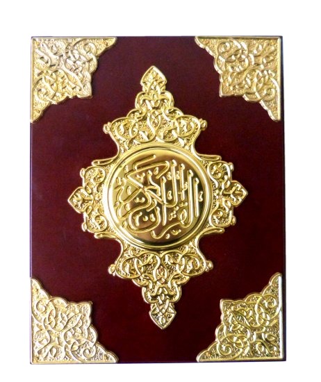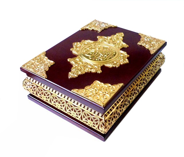 Grand Coffret Coran en bois de-luxe avec jolie motifs metalliques dores