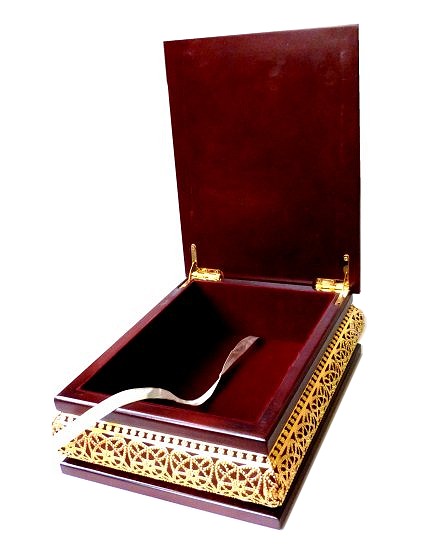 Coffret en bois de luxe spécial Coran avec jolis motifs métalliques dorés - REF. 23446 (20.00 €)