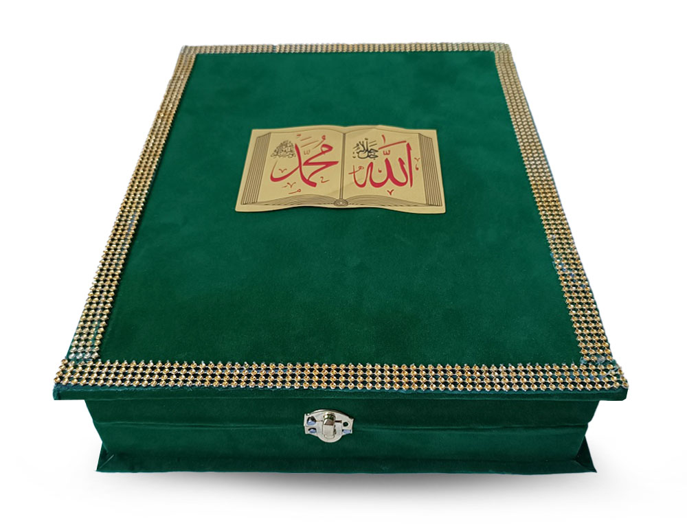Grand Coffret cadeau pour Coran ou livre avec inscription islamique - Couleur vert - REF. 39813 (14.90 €)
