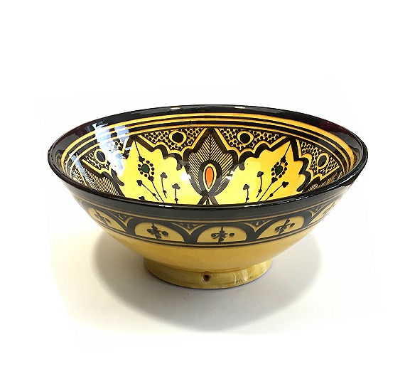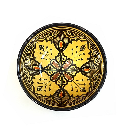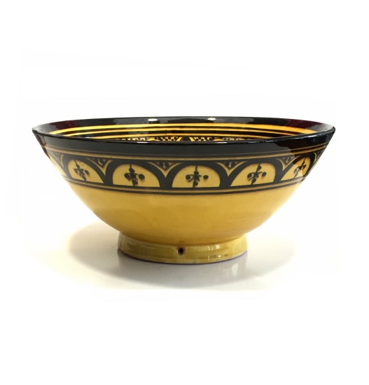 Grand Saladier / Plat creux en poterie peinte et décorée de couleur jaune Deco & Cadeau