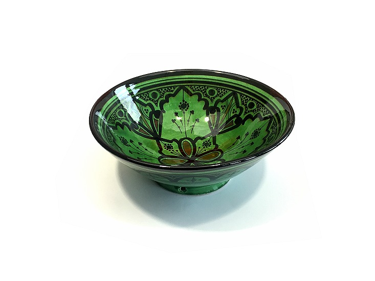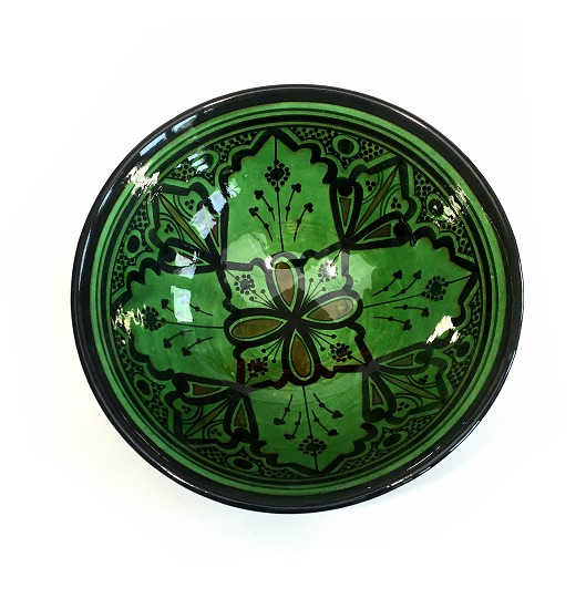 Grand Saladier / Plat creux en poterie peinte et décorée de couleur vert Deco & Cadeau