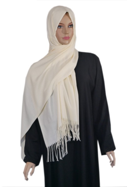 Grand châle de couleur blanc cassé avec des franges Vetement & Accessoire