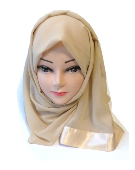 Grand chale mousseline pour hijab une piece avec bandes satinee (Plusieurs couleurs disponibles)