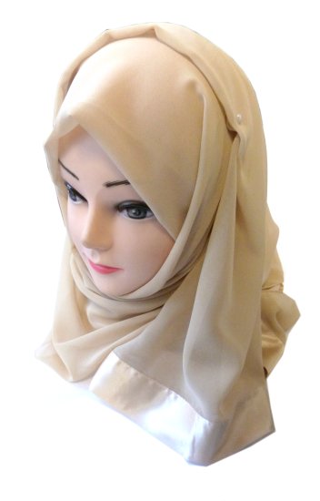 Grand chale mousseline pour hijab une pièce avec bandes satinée (Plusieurs couleurs disponibles) Vetement & Accessoire