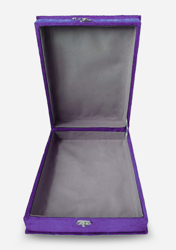 Grande boite en bois recouverte de velours de 7 cm d’épaisseur, vous pouvez y mettre même un Coran bilingue (français/arabe) épais ou plusieurs livres et des objets. Vous pouvez utiliser ce coffret également pour ranger vos bijoux ou autres effets personnels...