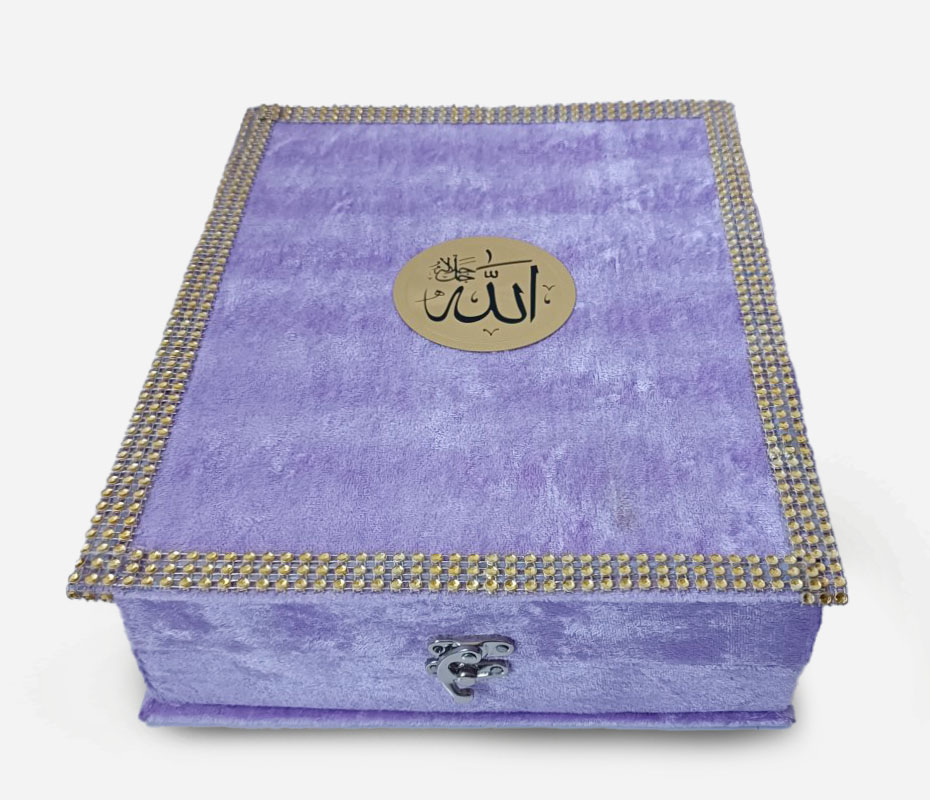 Grand coffret Cadeau pour Coran ou livres avec inscription islamique - Couleur mauve clair
