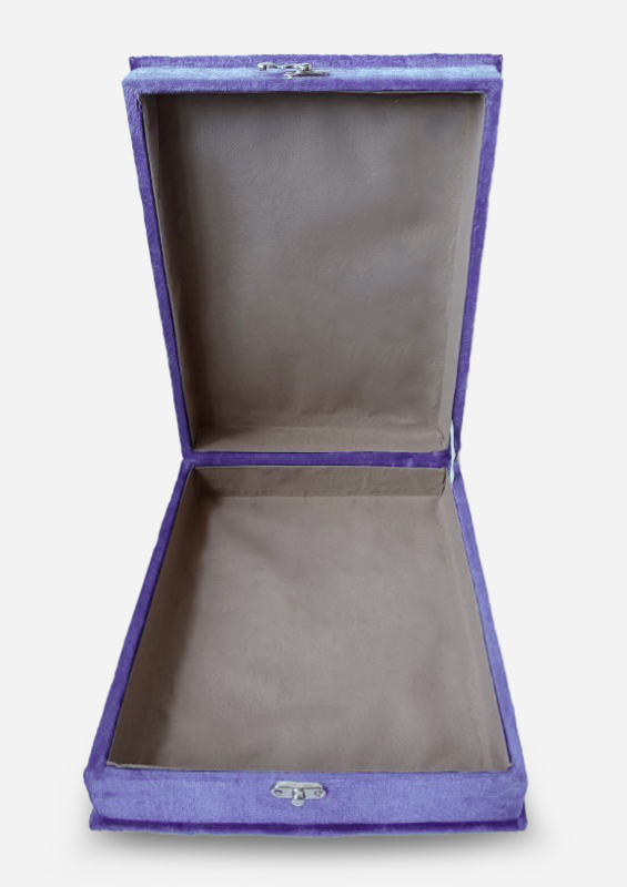 Grande boite en bois recouverte de velours de 7 cm d’épaisseur, vous pouvez y mettre même un Coran bilingue (français/arabe) épais ou plusieurs livres et des objets. Vous pouvez utiliser ce coffret également pour ranger vos bijoux ou autres effets personnels...
