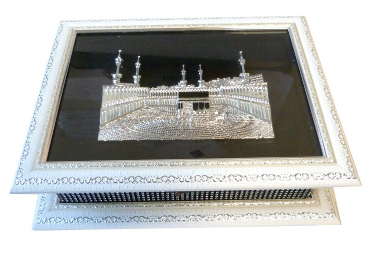 Grand coffret en bois argenté et décoré de strass avec illustration de La Mecque et de la Kaaba Deco & Cadeau