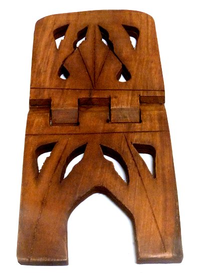 Sculpté en bois, pratique pour y poser un livre lorsqu'on s'assoit par terre pour lire et méditer. Facile à ranger (se plie). Généralmeent utilisé dans les mosquées ou les maisons pour lire le Coran.