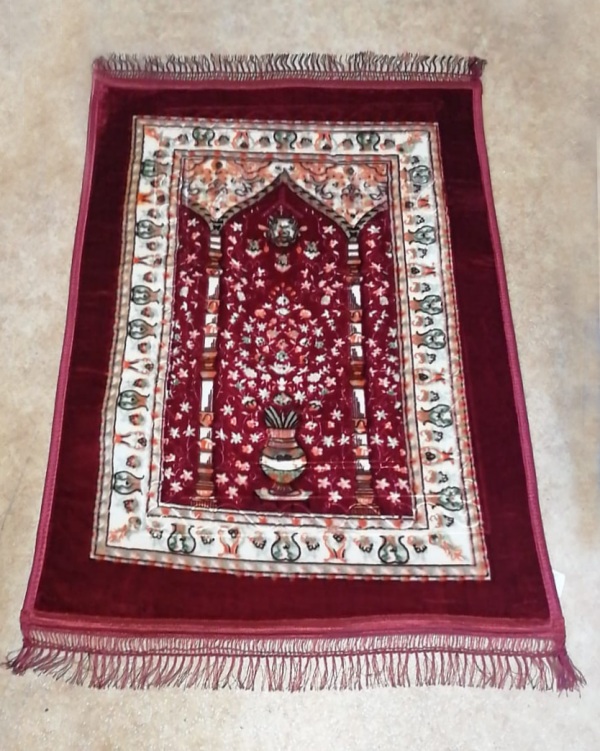 Tapis de prière rembouré une place bordeaux uni avec partie argentée - REF. 19664 (12.00 €) - En Promotion à 8.90 €