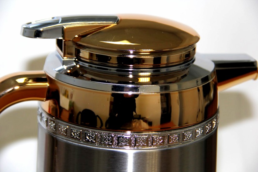 Thermos 1L métallique de qualité supérieure (argentée avec parties dorées) - REF. 24843 (48.00 €)
