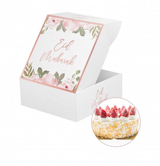 Grande Boîte à gâteaux avec inscription "Eid mubarak" (Aïd Moubarak) - Couleur Blanc fleuri et rose doré Deco & Cadeau