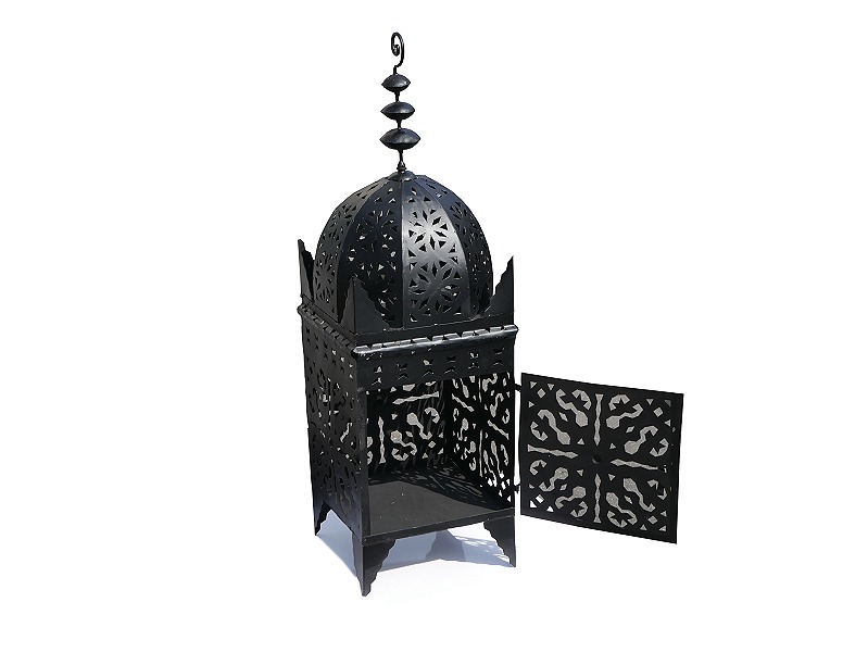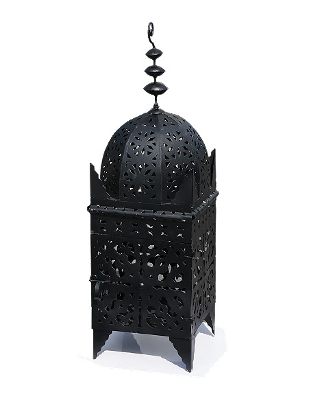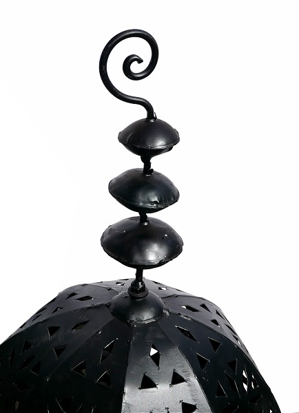 Cette lanterne est fabriquée en fer forgé, décorée de magnifiques ciselures sur toutes ses facettes, rappelant les motifs andalou-maghrébins.