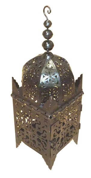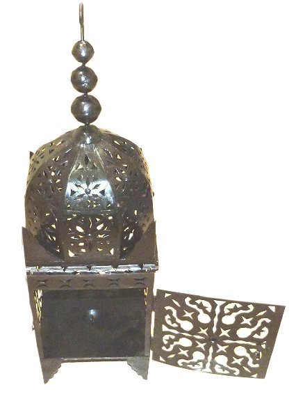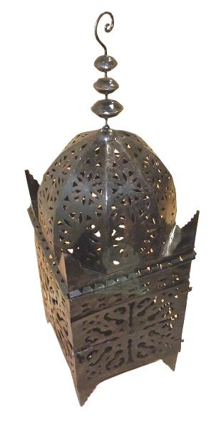 Cette lanterne est fabriquée en fer forgé, décorée de magnifiques ciselures sur toutes ses facettes, rappelant les motifs andalou-maghrébins.