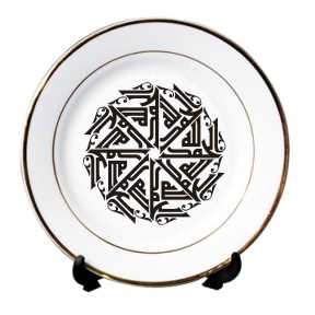 Assiette en porcelaine avec calligraphie artistique de l'invocation "al-hamdu lilâh" (Louange à Allah) réalisée par un calligraphe professionnel. Cette assiette se mariera bien avec tous types de mobilier.