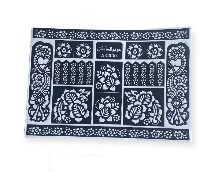 Grande plaque de motifs de tatouages au henné, idéal pour vos mariages et fêtes.