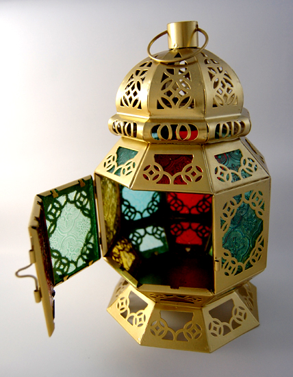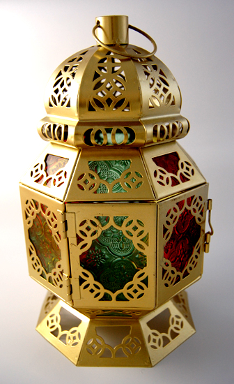 Lanterne métallique style mille et une nuits avec vitres en verre multi-couleurs - REF. 24741 (14.00 €)