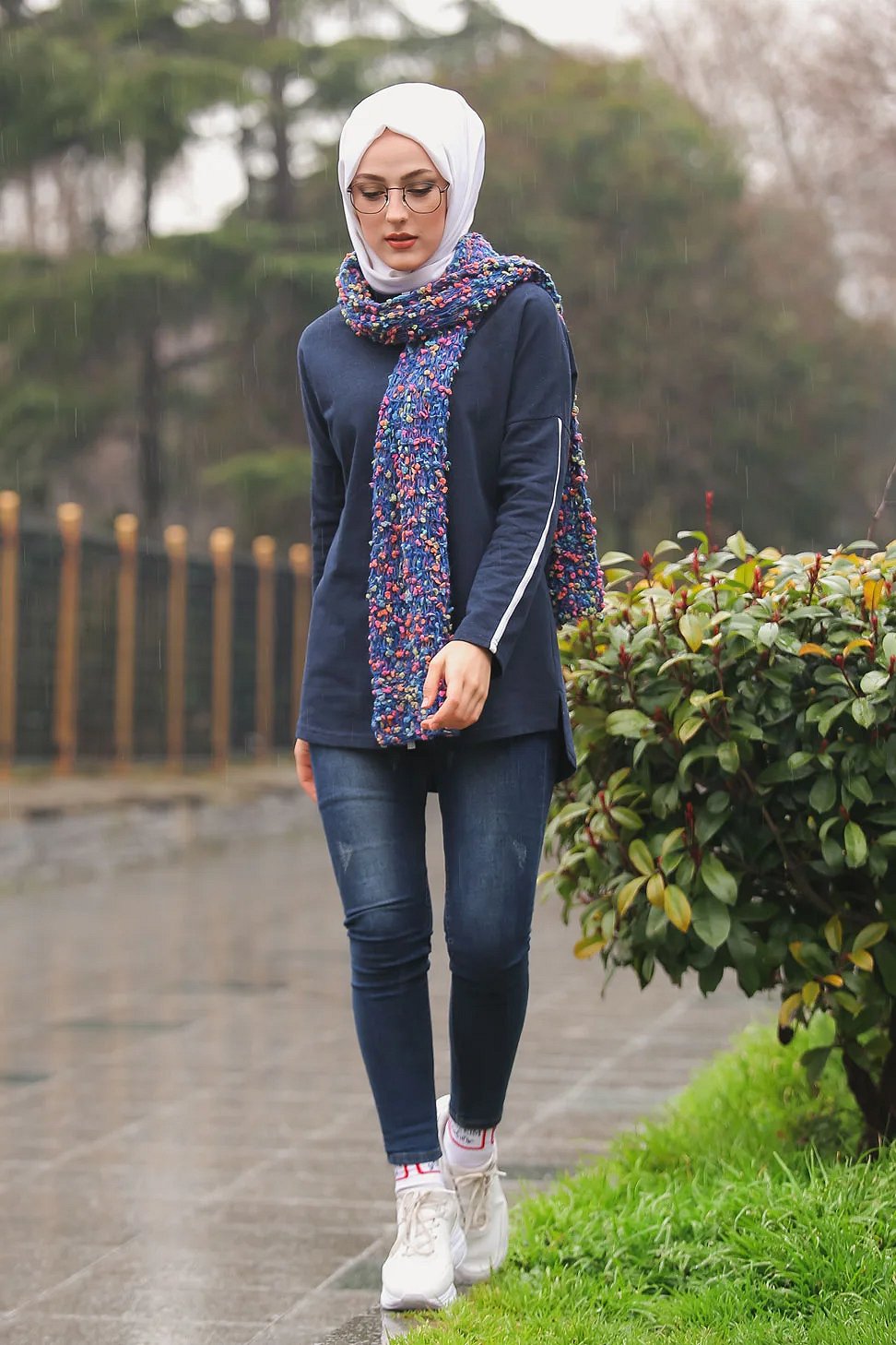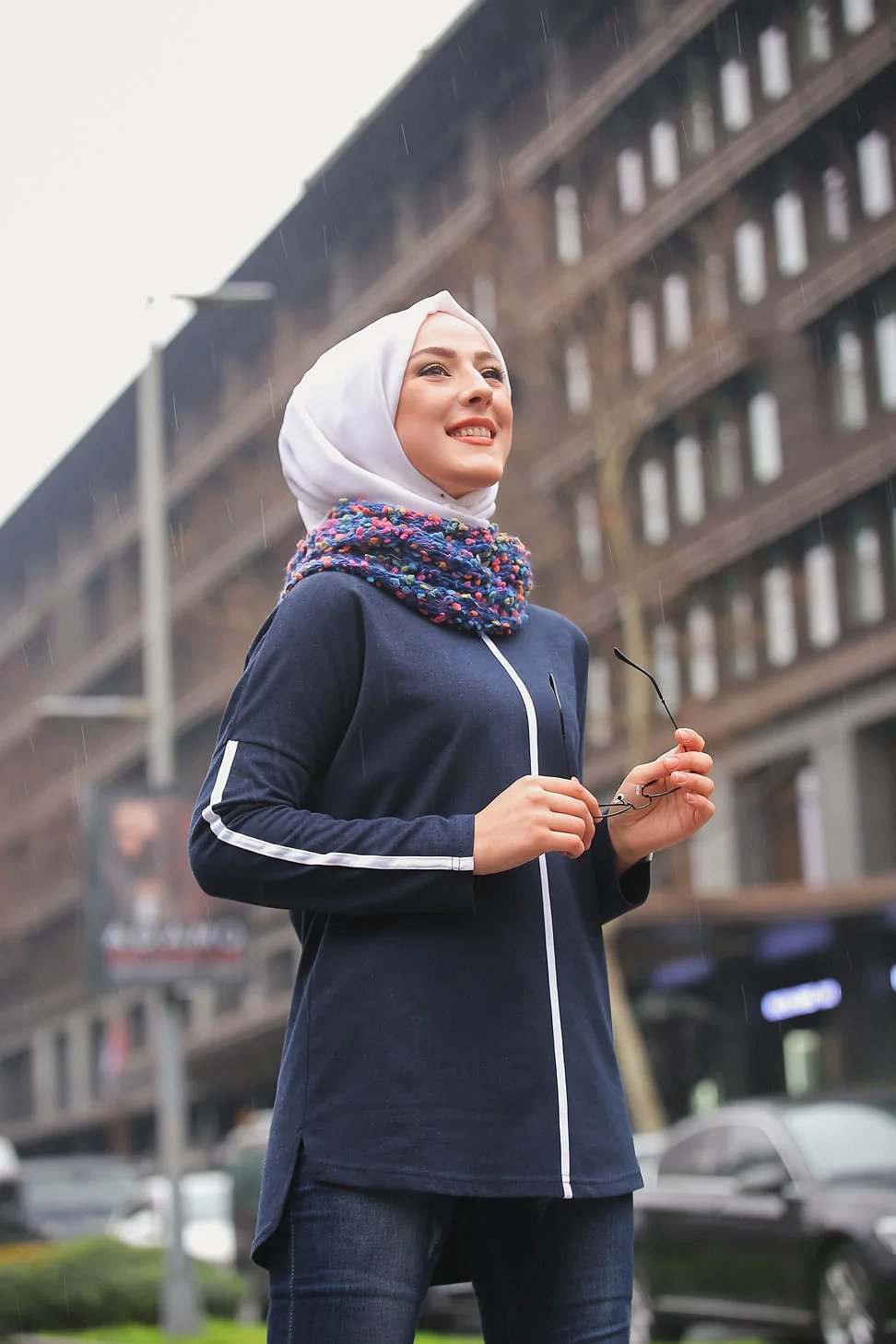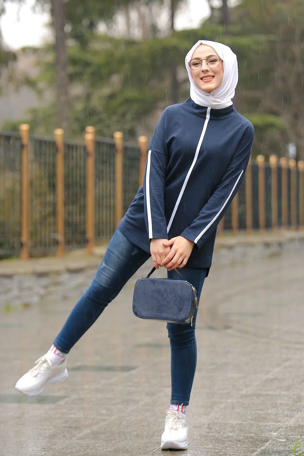 Survêtement deux pièces : Veste et Pantalon à bande blanche (Ensemble Sport Hijab pour femme) - Couleur bleu nuit - REF. 35171 (28.00 €)