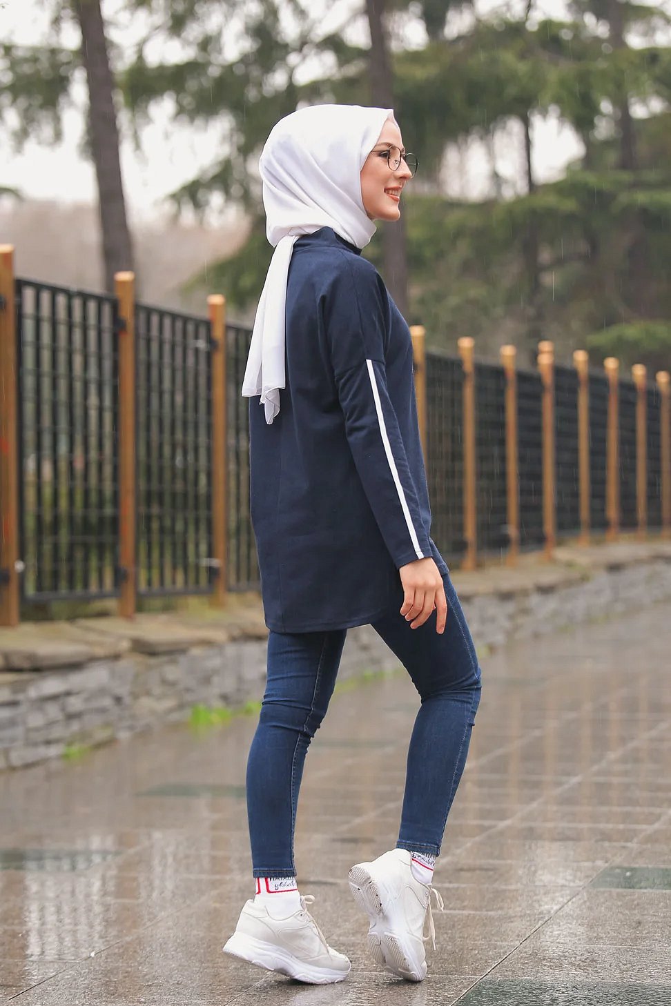 Haut Sportswear pour femme - Tunique Sport à bandes - Couleur bleu marine Vetement & Accessoire