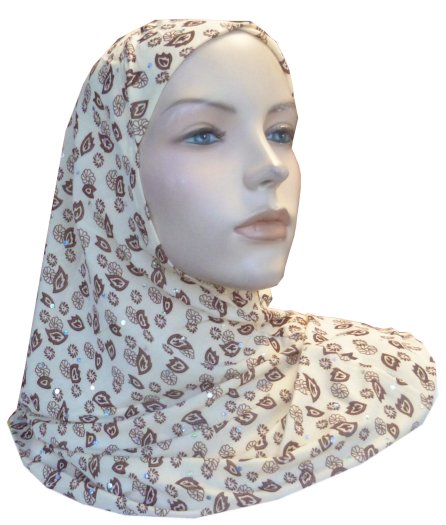 Hijab 1 piece beige paillete avec motifs marrons