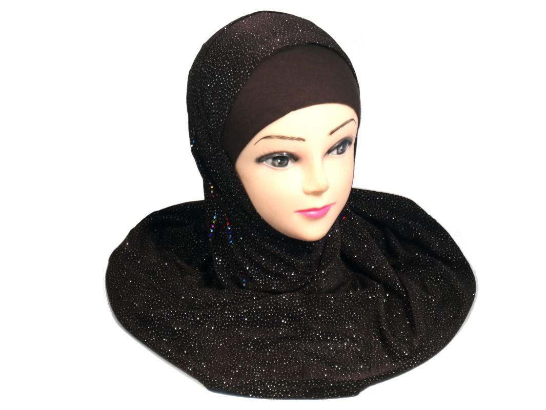 Hijab 1 piece marron fonce paillete avec strass multi-couleurs