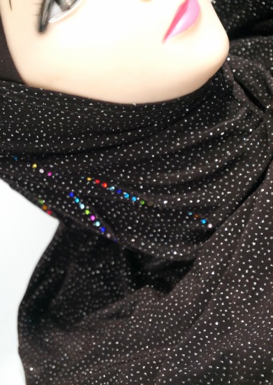 Hijab 1 pièce marron foncé pailleté avec strass multi-couleurs Vetement & Accessoire