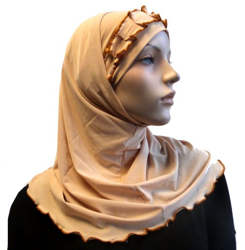 Hijab 2 pièces beige avec ruban froncé caramel Vetement & Accessoire