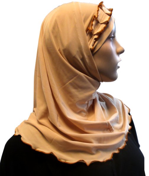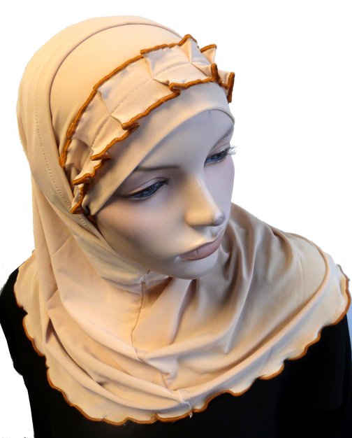 Hijab 2 pièces couleur camel décoré de fleurs - REF. 21863 (6.90 €) - En Promotion à 4.90 €
