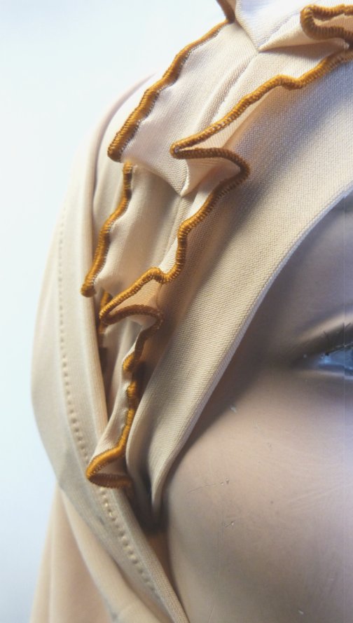 Très beau hijab 2 pièces beige avec ruban froncé piqué caramel.