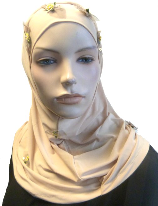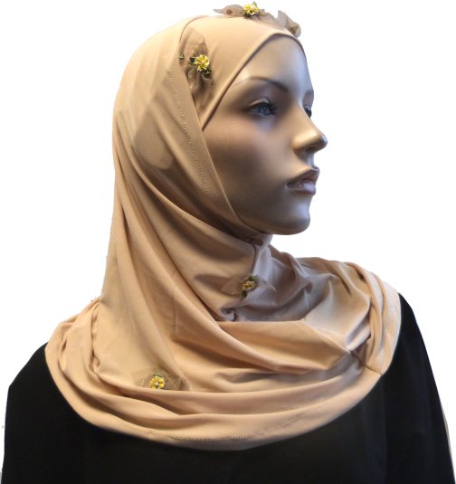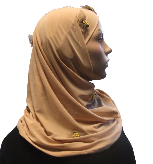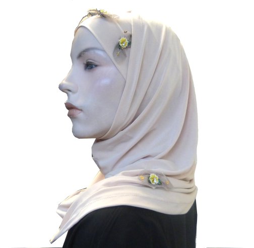 Hijab 2 pièces beige motifs fleuris Vetement & Accessoire