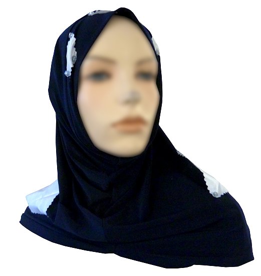 Hijab 1 pièce noir pailleté avec motifs fleurs blanches - REF. 22097 (6.90 €)