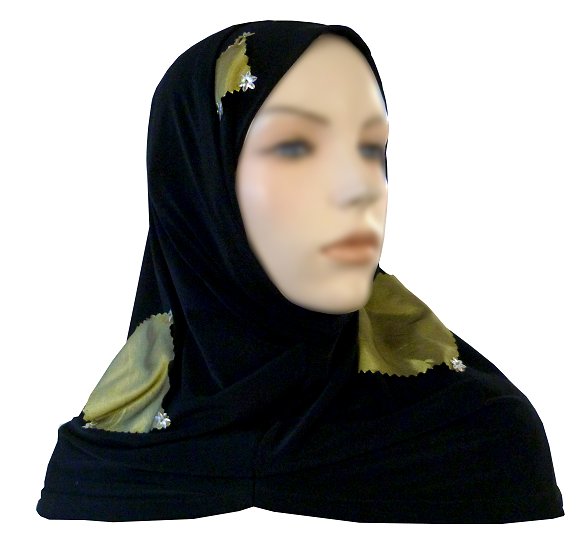 Hijab 1 pièce noir perlé au niveau du haut avec motifs cuivrés - REF. 22084 (6.90 €)