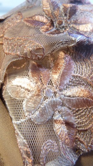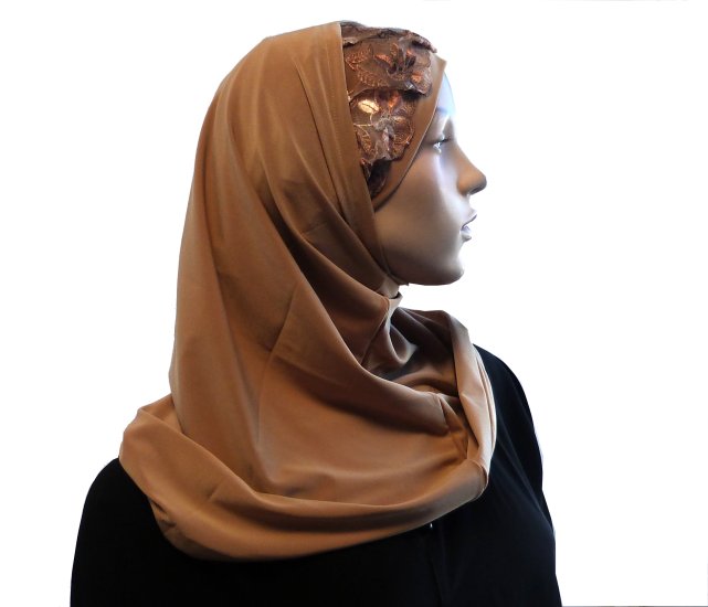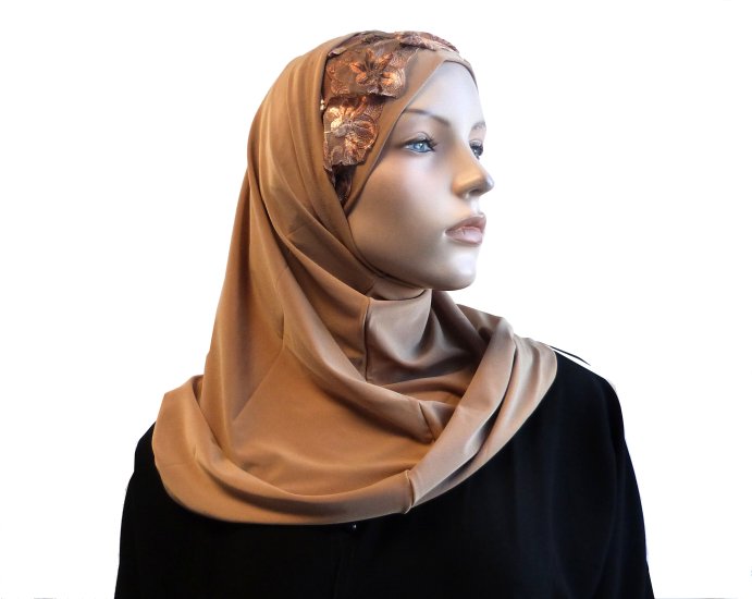Hijab 2 pieces couleur camel decore de fleurs