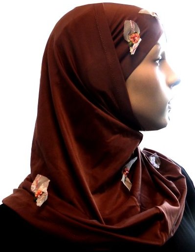 Hijab 2 pièces marron décoré de fleurs Vetement & Accessoire