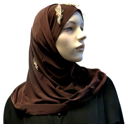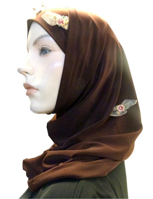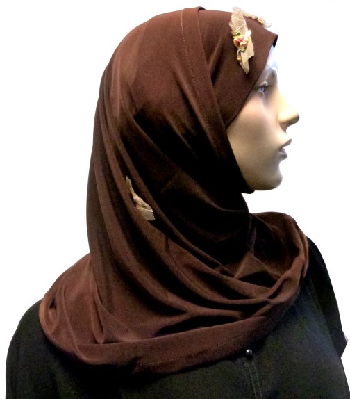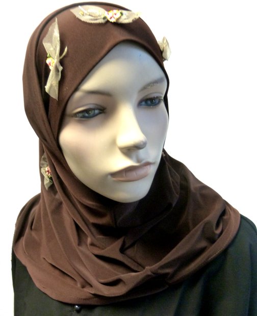 Hijab 2 pièces avec dentelle et motifs fleuris (Marron chocolat) - REF. 21620 (6.90 €)