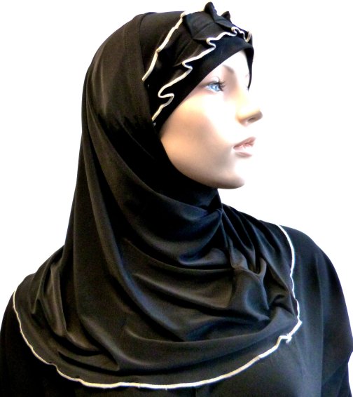 Hijab 1 pièce noir pailleté avec motifs fleurs blanches - REF. 22097 (6.90 €)