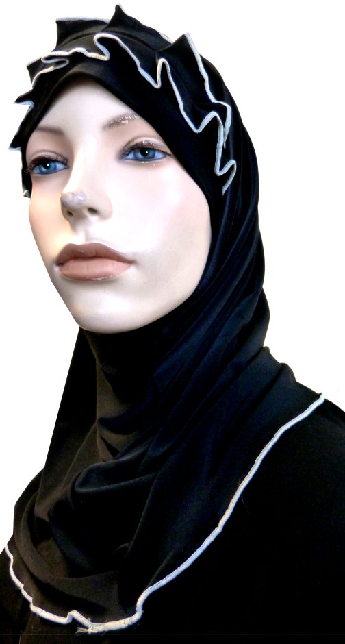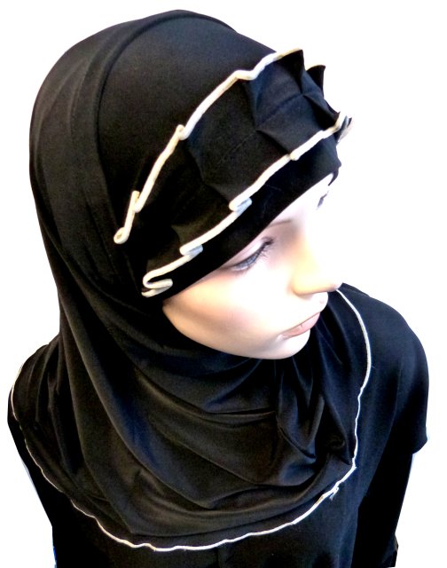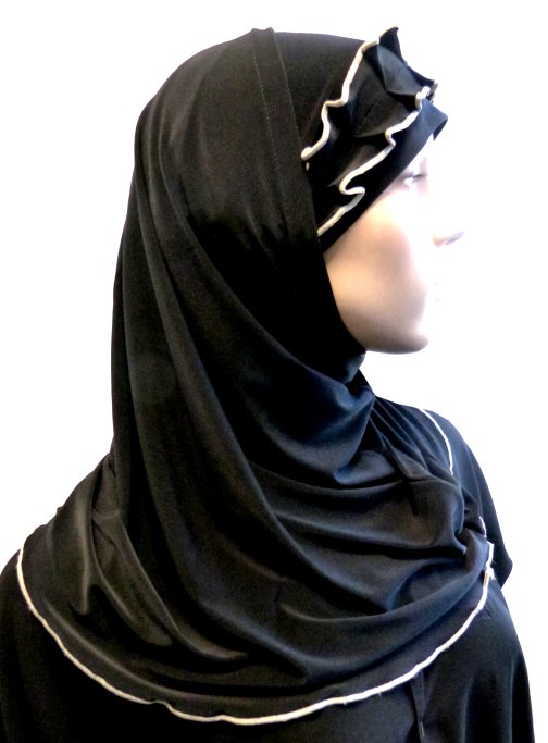 Hijab 2 pièces noir avec ruban froncé gris  Vetement & Accessoire
