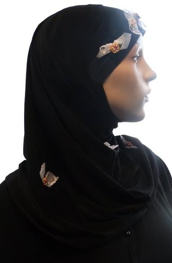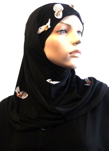 Hijab 1 pièce noir pailleté avec motifs fleurs blanches - REF. 22097 (6.90 €)