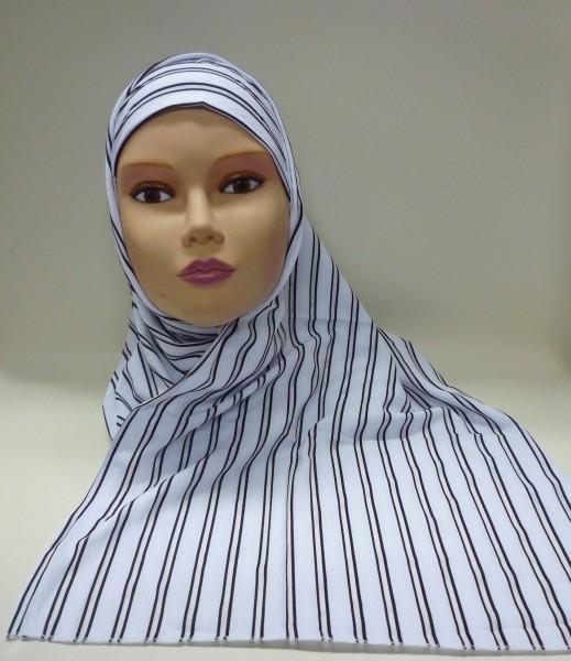 Hijab "Assala" blanc a rayures noires - 1 piece