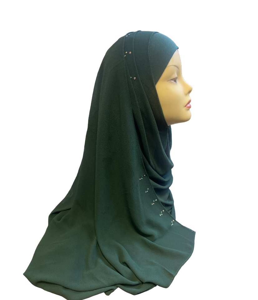 Hijab en crepe facile a enfiler - Couleur vert fonce