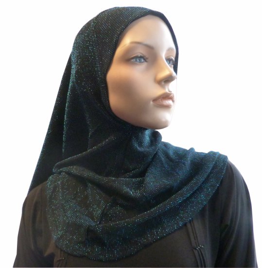 Hijab noir pailleté en bleu turquoise - REF. 22382 (6.90 €)