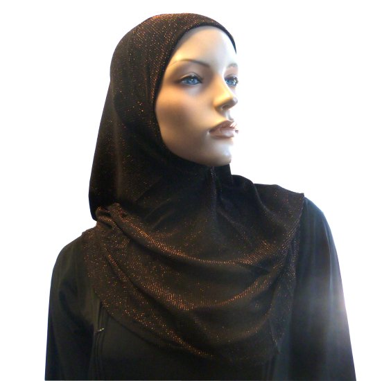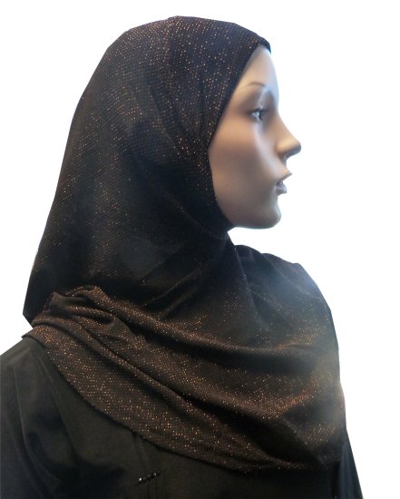 #TITRE-EN: Black hijab with orange glitter #DESCR-EN: Nice black hijab with orange glitter.