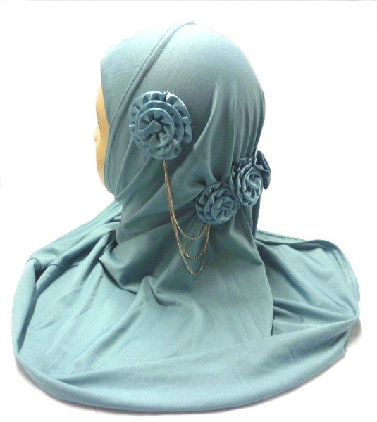 Hijab une pièce gris clair avec une rose latérale ornée d'une chaîne argentée Vetement & Accessoire
