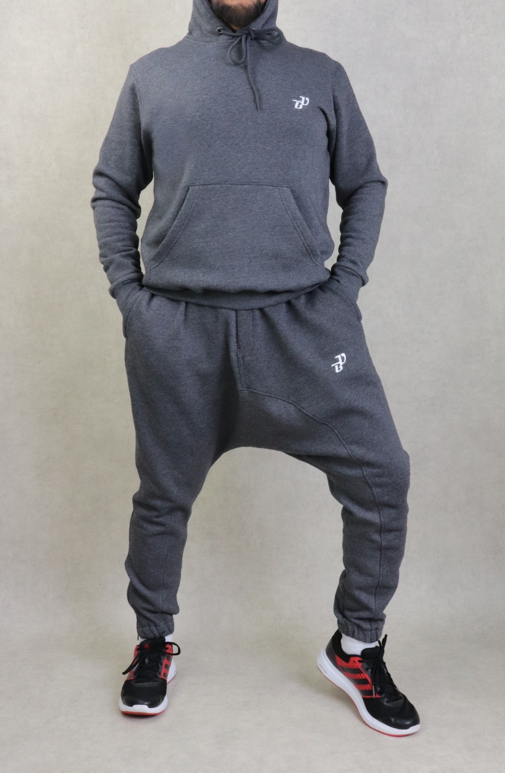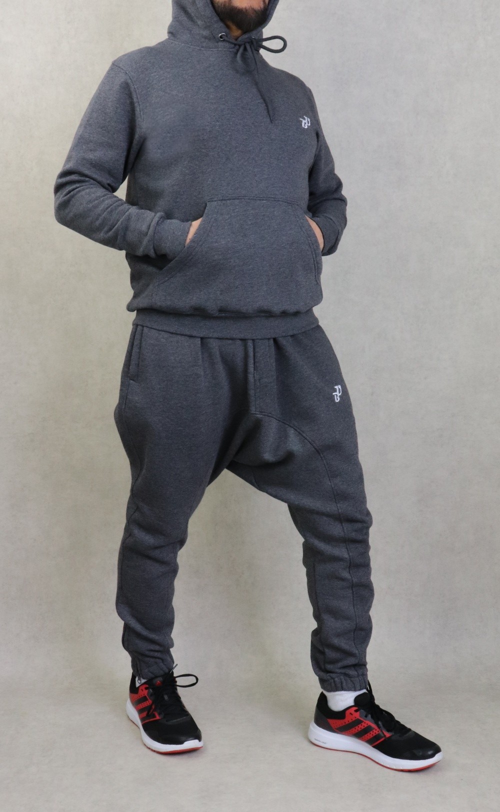 Pantalon jogging type Sarouel molletonné zippé aux chevilles pour homme - Marque Best Ummah - Couleur Gris foncé chiné - REF. 36500 (29.90 €)