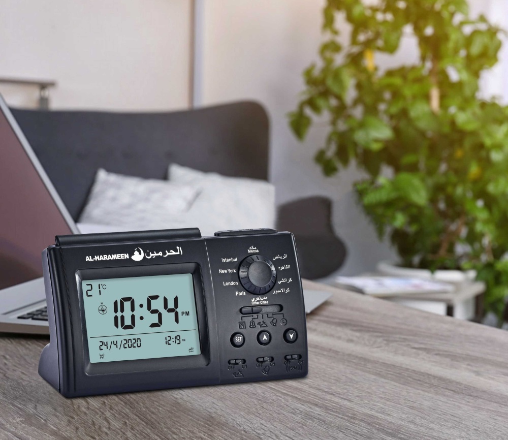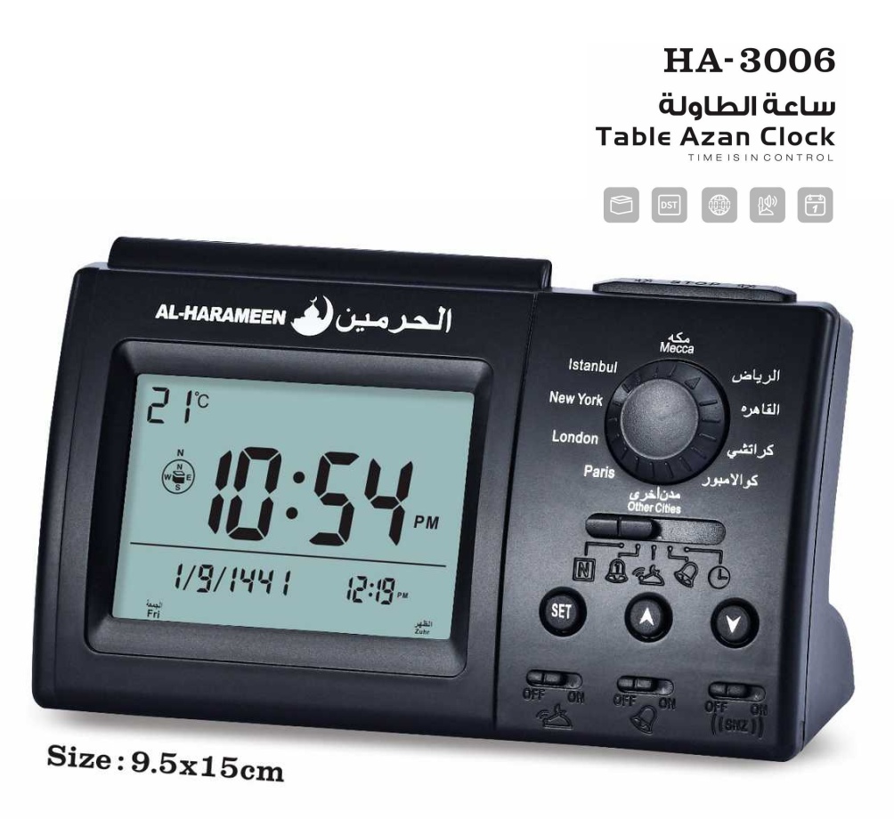 Montre Horloge Pendule (double écran) avec horaires des prières et appel à la prière (Adhan automatique) - Al-Harameen Clock (HA-4012) - REF. 8824 (45.00 €)