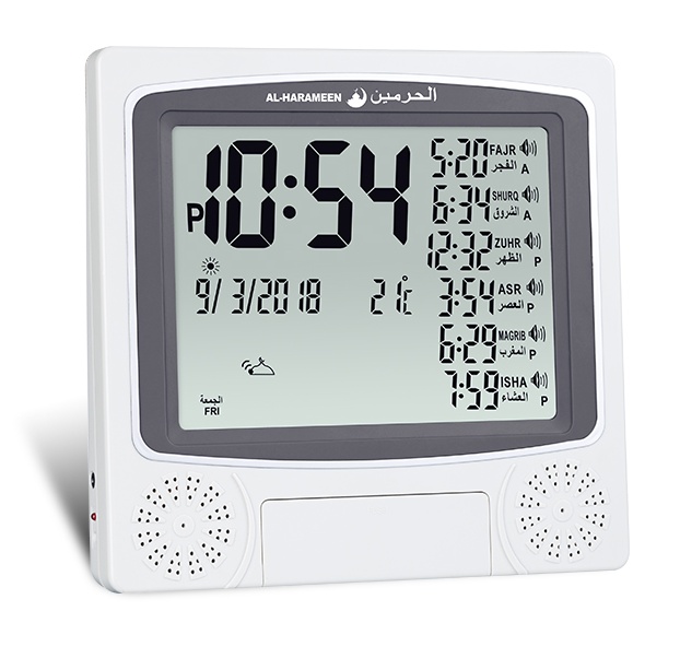 Characterized AL-HARAMEEN O’clock with A high quality Azan sound for all prayers with azan volume control fitted in all clock models.